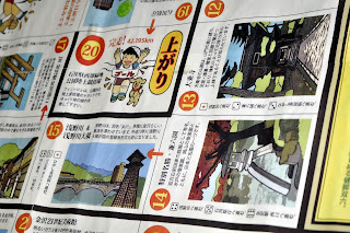 | テーブルの上に金沢健脚双六が広げられた |
